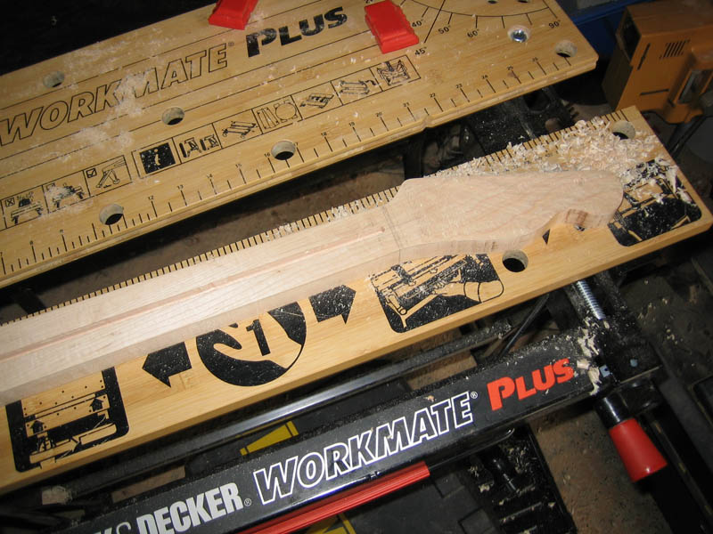 Traced the outline onto the neck blank, rough cut with a Jigsaw.