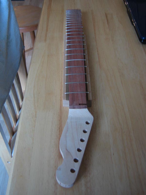 This is my first attempt at fretting and it’s not quite as easy as it looks. All frets are in, now to trim, file, level and crown….