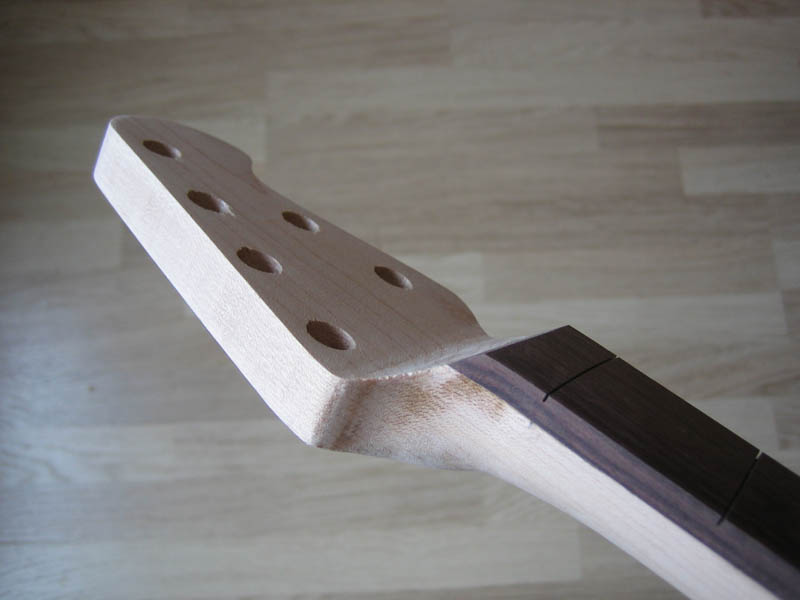 - Remeber to measure and not just guess how deep to drill the tuner holes! Got it wrong, but wasn’t too bad to redrill after the headstock was cut to thickness.