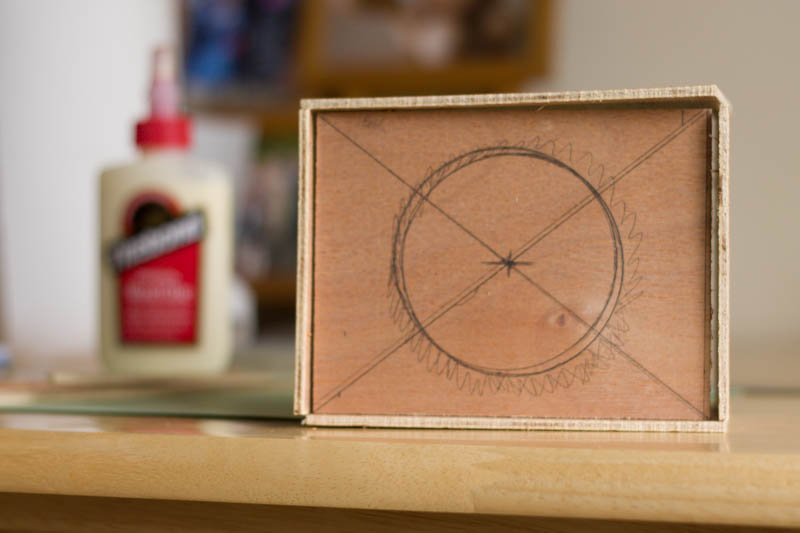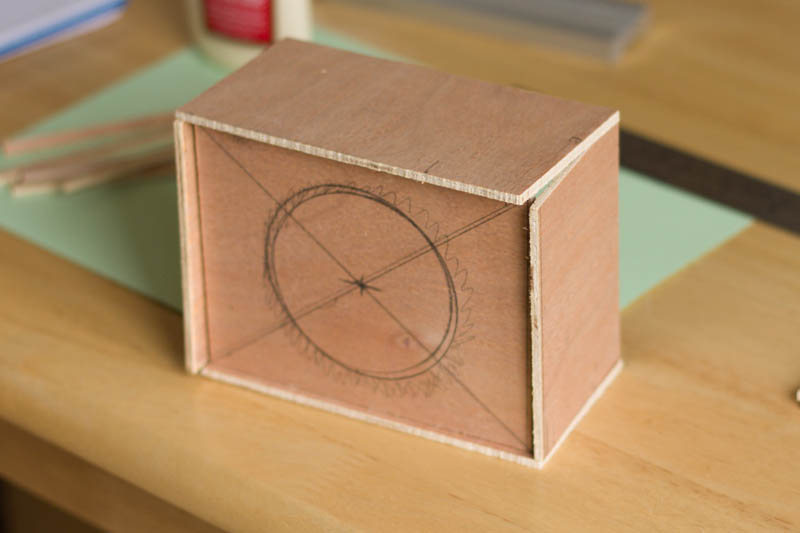 I then glued on the horizontal batons (I’m skipping pins at this size). It was going to be too annoying to clamp properly, so some heavy glass tea light holders plus a random tin of coins as a clamping force. These set the front and real panels – so their positing is important. For the next build I’ll take more time over this stage, ensuring the batons are flat and true, placed in the correct position.