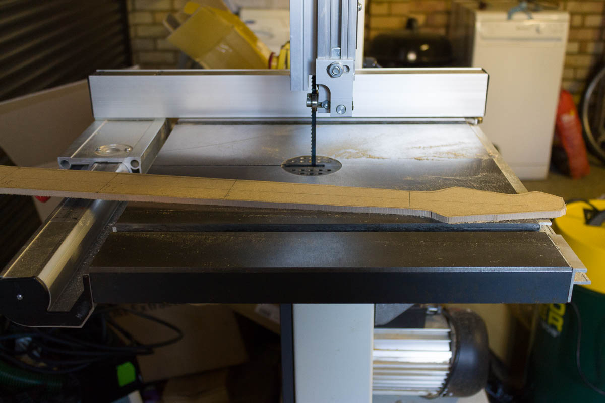 - Outline copied onto neck, rough cut on bandsaw