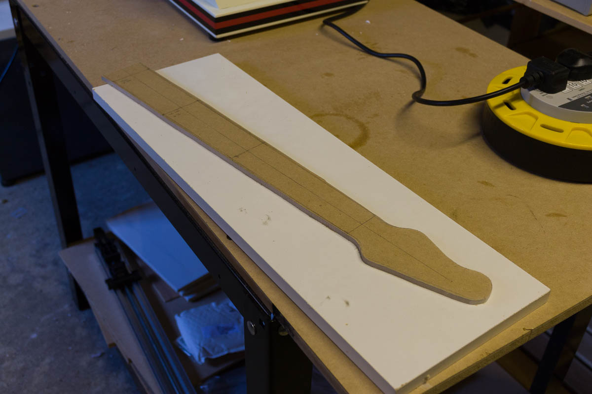 - Template made in 6mm MDF. Neck measurements came from an Excel spreadsheet (which I’ll refine over time)