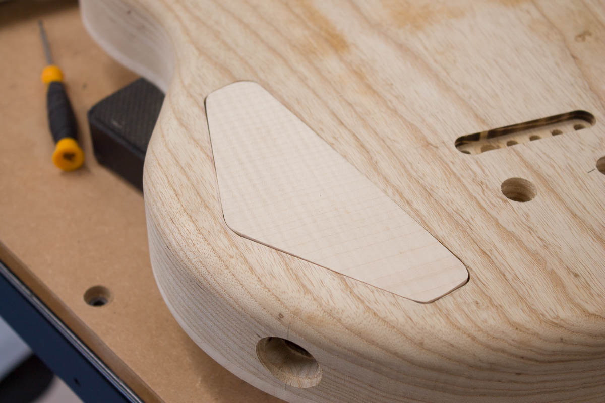 I was thinking of using a piece of the ash to make the cavity cover, however I was looking at the cutoff from the glued up top and realised it could make a nice cavity cover.